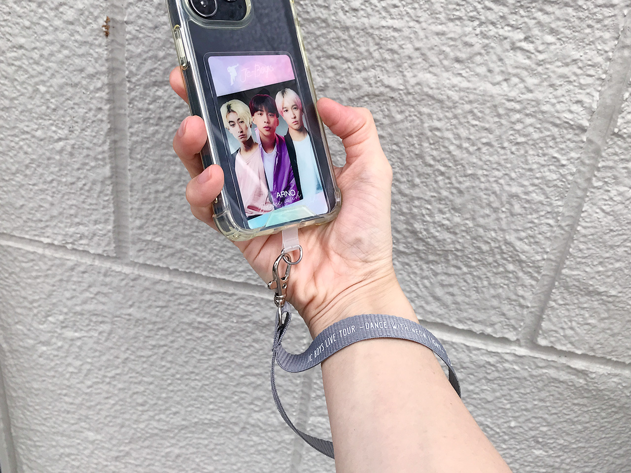 - 落下防止として手首やバッグに掛けやすいスマホストラップ付き