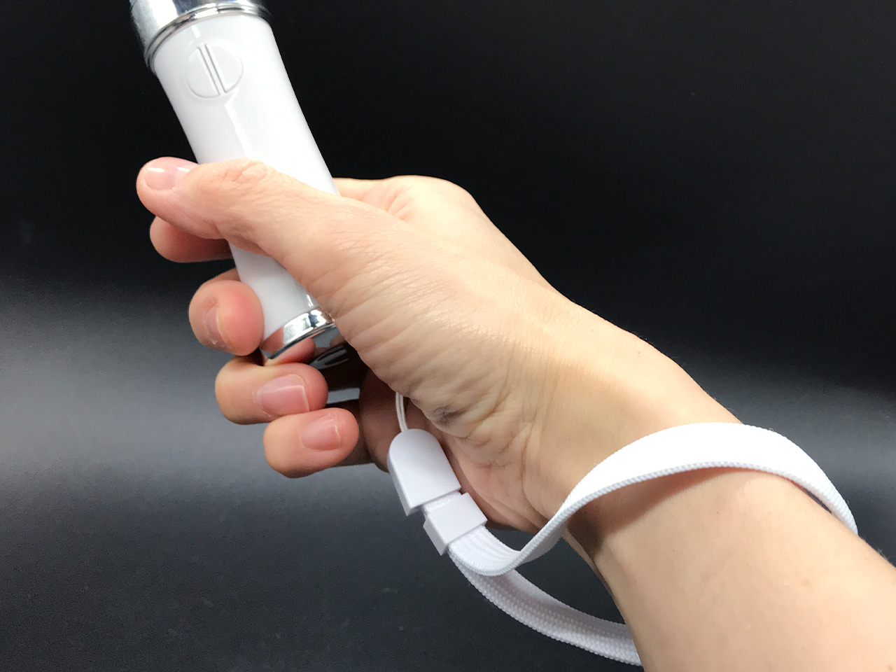 ショートストラップ(白無地)無料で付属します。手首にかけて使用すれば、ペンライトの落下を防止できます。